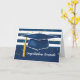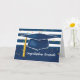 Blue Graduation Cap with Stripes and Confetti Card