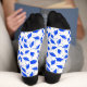 Awesome graduation socks! Blue and white graduation caps thrown in the air make a nice design on this men's fashion accessory neck tie for a parent, teacher or student to wear for graduation from high school, college, or university or to a graduation party following the graduation ceremony. Bright blue graduation caps on a white background.