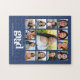 Be proud, rejoice and showcase this milestone of your favourite grad. Create this elegant, simple, modern, personalised high school graduation K – 12 photo collage jigsaw puzzle for a keepsake you’ll always treasure. A fun, playful visual of bold, graphic, white typography, along with their name, class year, school and 13 photos of your choice overlay a dramatic, navy blue background. Personalise the custom text with your grad’s name, school and class year. Choose from five different sizes. Matching invites, thank you cards, cap toppers, napkins, plates and other graduation goodies are also available in this trendy and stylish collection. Guaranteed to preserve cherished memories of their special occasion!