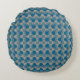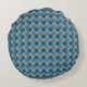 Blue Gray Checker Diamond Plaid Pattern Round Cushion