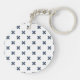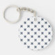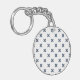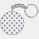 Blue-gray cross stitches on white key ring
