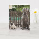 Blue Great Dane and pug dogs on leashes Card