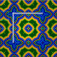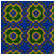 Blue, green and orange abstract Moroccan quatrefoil geometric pattern natural linen fabric, featuring an abstract Moroccan tile in tones of blue, green, and orange.