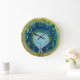 This stunning geode image has been captured and turned into a one of a kind wall clock. Bands of blue, green and turquoise agate are combined with small blueish white crystals that line the interior of the geode. This magnificent piece of mother nature has been combined with the gold details of the clock face, including golden numbers and gold border. This wall clock will turn heads, and not just those that are checking the time. Perfect for anyone who is longing for some natural bling or for those that love rocks. This geode clock makes an extraordinary gift!