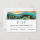 Green, blue and peach agate slice with gold foil veins modern geode summer wedding RSVP reply card. A modern and elegant wedding design with a slice of agate and a white band with your wording.