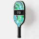 Personalised Modern pour painting marble effect blue, lime green and black abstract art pickleball paddle.