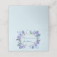 A circle of crystals in blue, green and purple for a name and table number place holder. Dark blue text on the blue colour inside and outside pages.