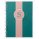 Blue-Green and Rose Trending Colours Monogram Notebook