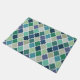 Seamless geometric quatrefoil pattern design in beige, green, blue, navy blue, grey, purple and turquoise colours on white background for everybody who likes oriental style design.