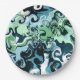 Blue, Green and White swirls Abstract Fluid Art Paper Plate