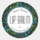 This sticker is an editable lip balm or lip scrub label for someone who makes their own beauty and spa products such as body butters, and day and night moisturising creams. The design features blue and green foliage growing in front of a chain link fence on a black background. Personalise this sticker with your own personal or business details. You can find other matching products in my city foliage category.
