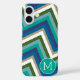 Blue Green Chevron Pattern Simple Monogram Case-Mate iPhone Case