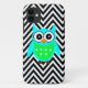 Blue Green Cute Owl Black Chevron Pattern Case-Mate iPhone Case