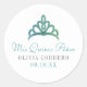 This stylish sticker features a blue green faux foil tiara along with the words "mis quince años" written in a teal coloured script. It also has space for your name and party date, making it perfect for envelope seals for quinceañera invitations or as decorations for party favours.