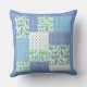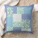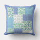 Blue Green Faux Patchwork Snowdrops and Polkas Cushion
