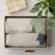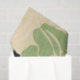 The tissue paper is inspired by a page from the Japanese art and design magazine Shin-Bijutsukai (美術海) from the early 1900s, edited by Furuya Kōrin. A decorative pattern of stylized white and green flowers looks distinctive against a dark blue background. This image is created in the Japanese woodblock print (ukiyo-e) style, reflecting the Art Nouveau movement, and is in the public domain.