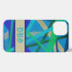 Blue & Green Geometric Pattern Monogram iPhone Case
