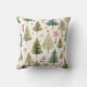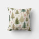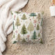 Modern green gold and green blue style winter tree images, along with touches of red, makes a fun pattern on both sides of this pillow. The images are placed on an off-white background. Perfect for the Holiday season, but this pillow can easily go through the entire winter in fashion.