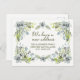 Moving announcement postcard with pretty blue and green watercolor, hand-drawn flowers. Text says, "We have a new address." Personalise by adding your name/family name and your new address. Contact me for assistance with customisation or to request additional matching or coordinating products.