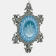 A single perfect ice crystal, set in gradient hues of blue and pink, framed by a laced snowflake design...gives almost a snow globe like effect. The ice crystal is actually a template, allowing you to replace with a photo of your family or winter scene of your choice, should you prefer.