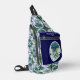 Stay stylish while on the go with this trendy sling bag featuring a unique blue and green jellyfish pattern. The front pocket, in a complementary dark blue hue, can be personalised with your name. Make a statement with this eye-catching bag, perfect for carrying your essentials with a touch of personalised flair.
