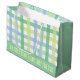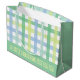 Blue Green Lime Pastel Modern Gingham Pattern Large Gift Bag