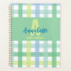 Blue Green Lime Pastel Monogram Gingham Pattern Planner