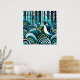 Blue Green Lovey Penguin Outdoor Forest Abstract Poster