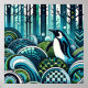 In the intricate layers of this vibrant artwork, where a penguin emerges from a sea of patterned waves and lush foliage. The design is a symphony of teal and green, dotted with splashes of white that bring to life the forest and ocean's natural rhythm. Swirling patterns and botanical elements fuse together, creating a sense of movement and depth that draws the eye in. This piece is a celebration of nature's complexity, perfect for those seeking a dynamic and refreshing touch to their decor.
