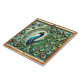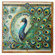 Blue Green Majestic Peacock Golden Feathers Motif Ceramic Tile
