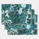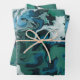 Blue Green Marbled Brushstrokes Handmade Art Wrapping Paper Sheet