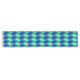 A 14” x 72” table runner featuring a colourful, ombre pattern design of chevrons in lime green, royal turquoise, ocean blue and sky blue.