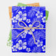 BLUE GREEN ORANGE TROPICAL HIBISCUS FLOWERS WRAPPING PAPER SHEET