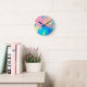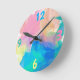 Blue, Green, Peach, Blue Paint Splash Round Clock
