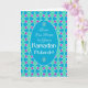 A chic Ramadhan greeting card, 'From Our Home to Yours", with a traditional Islamic pattern in Blue, Green and Purple, outlined in White; from the Posh & Painterly 'Islamic' collection.