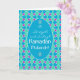 A chic greeting card to personalise for Ramadhan, with a traditional Islamic pattern in Blue, Green and Purple, outlined in White; from the Posh & Painterly 'Islamic' collection.