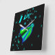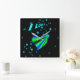 Blue Green Rainbow Heart with Stars Square Wall Clock