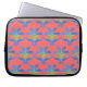 A stylish sleeve to protect your laptop, with an Art Nouveau pattern in bright blue, green and scarlet, from a handpainted design by Judy Adamson and a black trim.