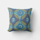 Blue Green Rustic Boho Geometric Circle Pattern Cushion