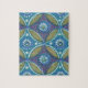Blue Green Rustic Boho Geometric Circle Pattern Jigsaw Puzzle