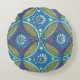 Blue Green Rustic Boho Geometric Circle Pattern Round Cushion