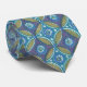 Blue Green Rustic Boho Geometric Circle Pattern Tie