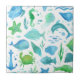 Blue green sea ocean fish dolphin white nautical ceramic tile