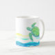 Blues, greens and yellows create this scene of marine life of a turtle and the bottom of the sea...crystalline waters allowing the yellow gold sand to show.