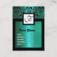 BLUE GREEN SILK DAMASK CLOTH ,SQUARE MONOGRAM BUSINESS CARD