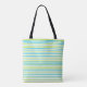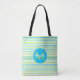 Blue Green Simple Elegant Stripes Name Monogram Tote Bag