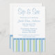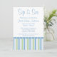A cute sip and see invitation, featuring blue and green stripes. Perfect way to welcome your little boy -- Easily customise for your sip and see party!