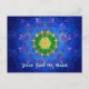 A rotational-type fractal image resembling 1960s tie dye; multi-coloured with blues and yellow predominant. Customise by adding your own text.