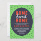 Celebrating your new home with a Housewarming Party. Invite friends and family with this Housewarming Party invitation featuring the words "Home Sweet Home" and vibrant modern green and blue triangles background pattern.