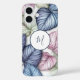 A pattern of blue, green and lavender leaves with your monogram initial in a circle make a pretty and personal phone case.